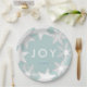 This chic and modern " JOY " christmas and holiday paper plate features a light blue / robbin egg blue background with white and grey frosted snowflakes. Personalize it for your needs. You can find matching products at my store.