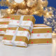 Festive joy heart pattern on striped golden and white background Gift Wrapping Paper.