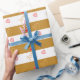Joy Heart Pattern on Striped Golden & White Wrapping Paper