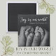 Celebrate the newest bundle of joy this holiday season with this baby's first Christmas magnet! With its classic black and white colour scheme and modern design, this photo magnet will be a cherished keepsake for years to come. Perfect for new parents, grandparents, aunts and uncles, and anyone as obsessed with your little one as you are!