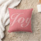 A beautiful dusty rose throw pillow emblazoned with the word "Joy". Perfect for holiday decorating, or just to add a pop of colour and joy to