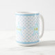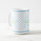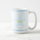 Beautiful mug with stars, light blue polka dots and personalized joy, love, life text.