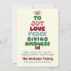 Joy Love Peace Giving and Kindness - wonderful sentiments for holiday greetings. Modern puffy lettering in a Tree Shape with a Shining star on top. Vintage Christmas colours include shades of red, green, blue, and pink for a distinctive personalized holiday card. You can personalize the message, the family name and individual names.