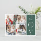 Spread JOY this Holiday Season with these modern Christmas Holiday Cards. Design features a 4 photo collage, a festive green block with white elegant lettering text - JOY, the family name and year. On the reverse you can personalize your own christmas wish message and name/s.