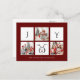 Send customizable and personalized holiday greetings to friends, colleagues and family in simple, chic, elegant and modern 3 photo collage design festive, natural minimalist style cards! On the front, a three photo collage surrounded by the word " joy " with a cute reindeer face in modern typography is featured in a beautiful maroon red background. Below the calligraphy features your custom greeting message from your family name in modern typography.