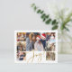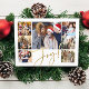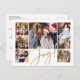 Modern photo collage Christmas postcard featuring 7 photos, Joy handwritten script in gold colour. Personalize with further with your message on the back.
