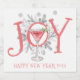 Whimsical unique illustrated JOY typography New Year's Eve party liquor bottle labels with holiday cocktail and pine boughs. Spread some cheer with this festive holiday party napkin style. Toast to a happy 2023.
