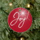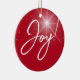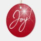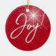 Joy! or Your Message, White Text on Deep Red, Star Ceramic Ornament