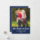 Joy Peace and Love Navy Blue Brushed Script Photo Holiday Card