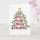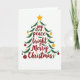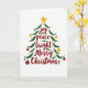 Brighten someone’s holiday with a beautifully designed Christmas greeting card 🎄 This card features a Christmas tree illustration on a white background, made up of festive words like joy, peace, and Merry Christmas in red cursive font. The tree is adorned with green leaves, yellow dots, a yellow star topper, and a red and white ornament hanging from the side 🌟 The overall design is simple yet cheerful, perfect for spreading holiday cheer to your loved ones this season 🎁✨.