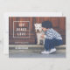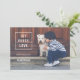 These holiday photo cards have a modern, minimalist vibe, and put your family photo in the spotlight. Design features a white square outline box with "Joy, Peace, Love" inscribed inside in white block typeface. Three lines of customizable text allow you to add a message, your name(s), and the year. Text fields can easily be moved to suit the layout of your photo.