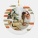 Joy, Photo Template Christmas holiday Ornament with bold modern pattern back - add your own photo and text to this Ornament from Ricaso - featured with a trendy pattern background in muted sage green and orange tones.
