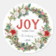 Joy Rustic Typography Name Christmas Wreath Red Classic Round Sticker