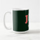 For Christmas-Joy and Happiness! Customer specific, colourful, festive, typographic "JOY" santa hat, green, mug with your name/text.