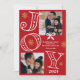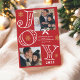 Spread joy and blessings this holiday season with this stylish and festive two-photo "Joy" Christmas card. Featuring elegant letters in red, white, and gold with customizable colours, this card offers a personalized touch to your holiday greetings. The modern design incorporates snowflake accents and space for two of your favourite family photos, making it the perfect way to share love and happiness with friends and family