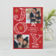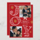 Joy script 2 photos snowflakes red gold Christmas Holiday Card