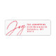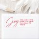 This Christmas card return address label features a modern script Joy along with room for a name and address. Perfect for a variety of holiday cards, this address label is a bright red type on white but also comes in other colours. Send holiday cheer and dress up your holiday envelope with this chic and stylish return address label for your Christmas cards.