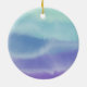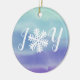 This beautiful ornament features the word joy with a snowflake in place of the letter "o". It has a colourful watercolor background with shades of blue and purple. A wonderful way to express the joy of the season in your home.