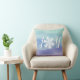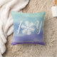 This beautiful pillow features the word joy with a snowflake in place of the letter "o". It has a colourful watercolor background with shades of blue and purple. A wonderful way to express the joy of the season in your home.
