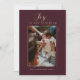 Wish your family and friends a happy new year with our elegant faux gold calligraphy and deep burgundy Happy New Year single family photo card. Design features a photo placeholder to display your special family photo. "Joy to the New Year" is displayed in an elegant faux gold calligraphy script & text paring. Customize with year and family signature. The reverse side features a simple elegant faux gold stripe design.