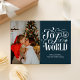 Joy to the World Blue Calligraphy Photo Modern Holiday Card