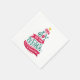 Paper napkins with a fun and whimsical illustration. Typography design in the shape of a Christmas tree with some christmas ornaments and a star on top. Inside are the words: Joy to the world.