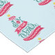 A tablecloth with a fun and whimsical illustration. Typography design in the shape of a Christmas tree with some christmas ornaments and a star on top. Inside are the words: Joy to the world.