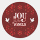 An Elegant and Modern Vintage Christmas Sticker features poinsettias flowers and pine branches botanical garland theme to represent the best of the holidays. It is inspired by the Christmas songs of Christmas past of the lyrics “Joy to the World” and is also a great way of expressing Holiday Cheer for those you care. Created with one-of-a-kind designed lettering and illustration for those who just love Unique and Novelty Styles! Designed by Katrina Sutton.