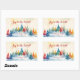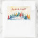 "Joy to the World" is in red script on this Christmas sticker. The design features a colourful pine tree snowy hillside during the winter holiday season. It is vintage-inspired a watercolor piece. All the text can be edited. Be sure to change the name(s) and date to those you prefer.