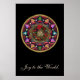 The UROCK! Christmas OM Mandala has rainbow colours mixed in with traditional Christmas red and green and gold, with a beautiful wreath surrounding the golden OM in the centre. It has white doves of peace, and golden snowflakes and crosses with sparkly metallic decor and a few more of our favourite things. It is both festive and spiritual and intended to centre the mind on what is truly important this time of year. It comes on high gloss black paper and frames are available.