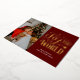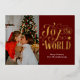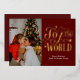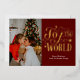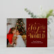 Joy to the World Red Gold Calligraphy Photo Modern Foil Holiday Card
