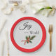Make your table extra festive this holiday with this Christmas themed "Joy to the World" paper plate with a evergreen holly branch design.