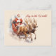 Joy to the World Santa Sleigh Reindeer Rushing Postcard