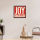 Beautiful retro style Christmas Typography Design Art with "Joy to the world" in Creme letters against red background with dark red stars on black background. Distressed vintage style.