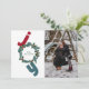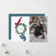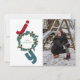 Joy with photo and christmas wreath on blue holiday card