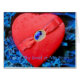 Texturés, l'imagerie, a aidé à créer, cette photo agrandie, graphique, d'une boîte rouge écarlate, en forme de coeur, avec arc et simulé, bijou saphir, sur l'avant-exposé avec la phrase de Valentine, contre, bleu-royal, écrasé, velours.