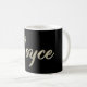 Une belle tasse de café noble dans le Handwriting liquid white gold design pour Joyce. Parfait aussi comme cadeau ou cadeau pour l'anniversaire ou le jour du nom.