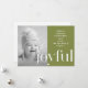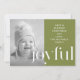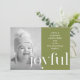 La carte de Noël moderne présente un type joyeux audacieux sur un arrière - plan vert vibrant avec simple message de vacances de typographie blanche et photo.