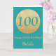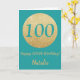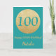 Joyeuse carte de Parties scintillant Turquoise et Gold 100e anniversaire avec nom personnalisé. Pour plus de personnalisation, cliquez sur le bouton "Customiser" et utilisez notre outil de conception pour modifier ce modèle.