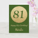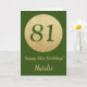 Joyeuse carte de Parties scintillant verte et or 81e anniversaire avec nom personnalisé. Pour plus de personnalisation, cliquez sur le bouton "Customiser" et utilisez notre outil de conception pour modifier ce modèle.