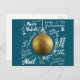 Joyeuse carte de voeux de Noël du monde en différentes langues avec arbre à billes d'or, texte calligraphique et écriture manuscrite de police