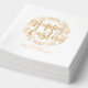 Happy Pâques Floral Wreath Élégant Script Nom personnalisé Foil Napkins Real Foil Stamped Paper Napkins dispose d'une couronne fleurie printanière avec le texte "Happy Pâques" dans la typographie élégante de script. Personnalisé avec votre nom ou texte préféré. Parfait pour célébrer Pâques avec style. Créé par Evco Studio www.zazzle.com/store/evcostudio