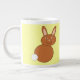 Cette énorme tasse présente une image adorable d'un lapin de Pâques heureux créé à l'aide de l'art vectoriel. Le lapin est brun avec une queue blanche. Il a un grand sourire sur son visage, tout comme un lapin de Pâques devrait.