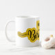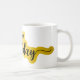Célébrez la journée spéciale de quelqu'un avec cette chic tasse Happy Birthday avec un script noir audacieux sur une bannière jaune joyeuse. Parfait pour un cadeau d'anniversaire ou une fête !