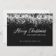 Cette Carte de Noël Joyeuse et moderne scintillante présente un confetti argenté brillant, contrastant le texte blanc écrit à la main sur l'arrière - plan noir. Au verso de la carte vous pouvez ajouter vos souhaits.