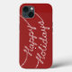 Happy Holidays écrit dans des lampes à cordes pétillantes accentuent ce coque iphone rouge canneberge, le rendant parfait pour un cadeau ou un accessoire d'hiver.