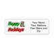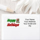 Étiquette avec des vacances heureuses en texte vert et rouge 3D et un ours en peluche avec un cadeau. Customisez ceci avec votre propre adresse et utilisez pour envoyer des cartes et des cadeaux de Noël. Trois tailles étiquettes au choix.