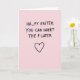 Cette carte est sur un fond rose blush doux qui donne une impression de douceur et d'invitation, avec une pointe de flirt 🌷. Centré près du haut, un lettrage épais dessiné à la main en noir indique « HA_PY EASTER », laissant un espace notable où une lettre devrait se trouver. Juste en dessous, le même texte noir continue avec « VOUS POUVEZ INSÉRER LE P PLUS TARD », transformant la lettre manquante en un petit coup de coude coquin entre amis proches ou un couple 🐰. Les lettres semblent légèrement inégales et décontractées, comme une note rapide griffonnée avec un marqueur, ce qui rend la blague plus intime. Le texte noir fort se détache nettement sur le fond rose pâle, gardant vos yeux sur le message et l'espace vide. Plus bas sur la carte, un simple contour de cœur noir est centré, faisant écho au style de ligne décontracté des mots et ajoutant une touche tendre