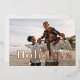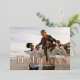 Simple et élégant carte photo de vacances de Noël met en vedette "Happy Holidays" dans une élégante typographie serif décorative avec des rouleaux en papier or rose comme un texte superposé à une image de paysage. Personnalisez le libellé personnalisé avec votre nom ou votre famille. L'arrière de la carte comprend deux espaces photo supplémentaires ainsi qu'un message personnalisé.