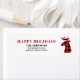 Une étiquette d'adresse de retour Happy Holidays avec une tête de cerf de buffle plaid pour correspondre à notre best-seller Oh Deer cartes de fin de année.